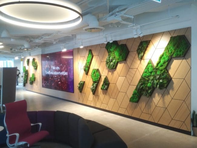 Partenaire :Ginkgo Sustainability www.ginkgosustainability.com Designer :Ray Inc. www.rca.on.ca Lieu :Toronto, ON, Canada Système(s) Biophilique(s) :Mur de feuillage stabilisé Dimensions :Hexagones Description du projet :Mélange de mousses stabilisées (mousse plate, mousse…