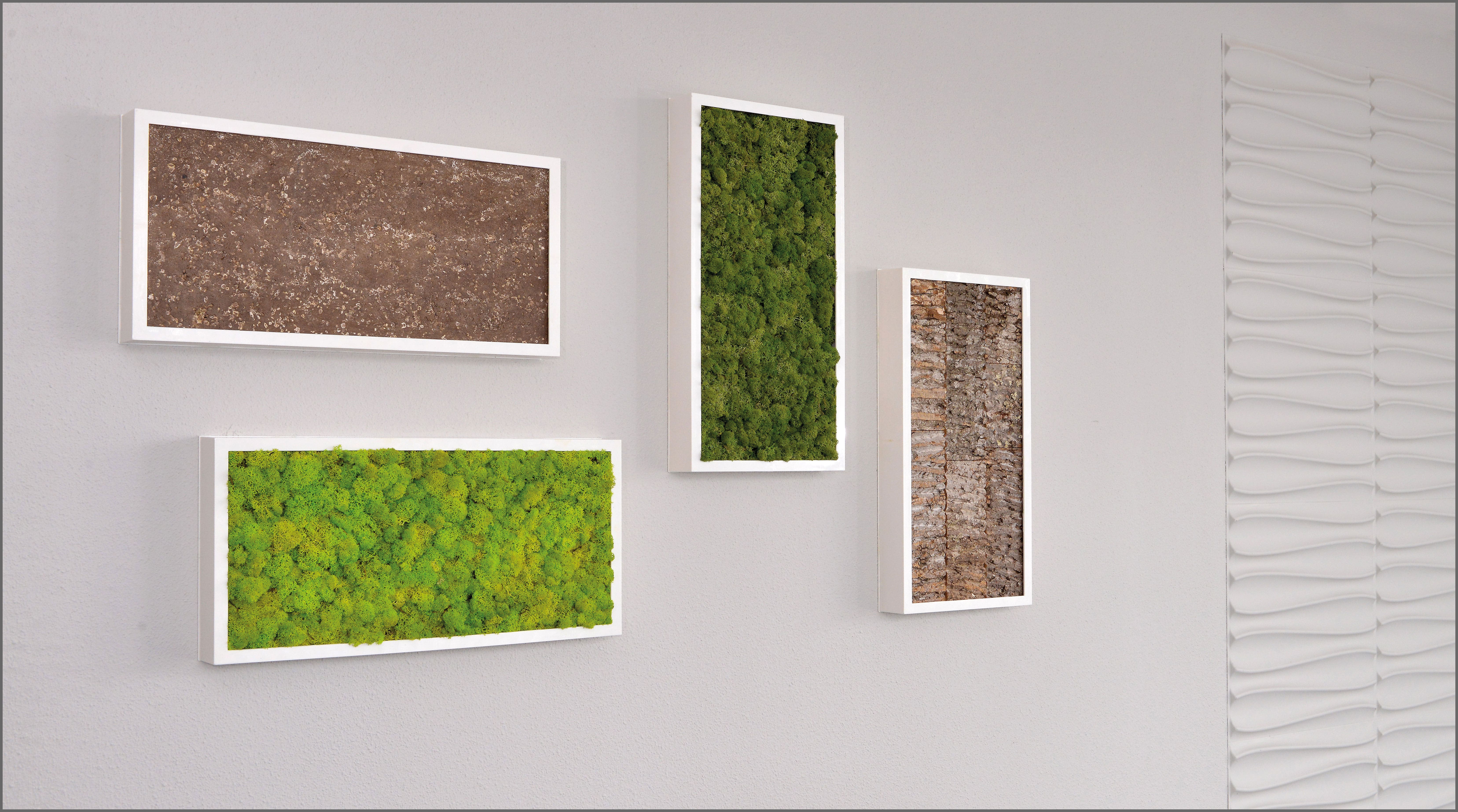 The BioMontage system is an easy to install, two-piece frame that holds a Moss, Folia or preserved panel for a clean & natural detail built into your space. Inserts can easily be changed to create a new look.