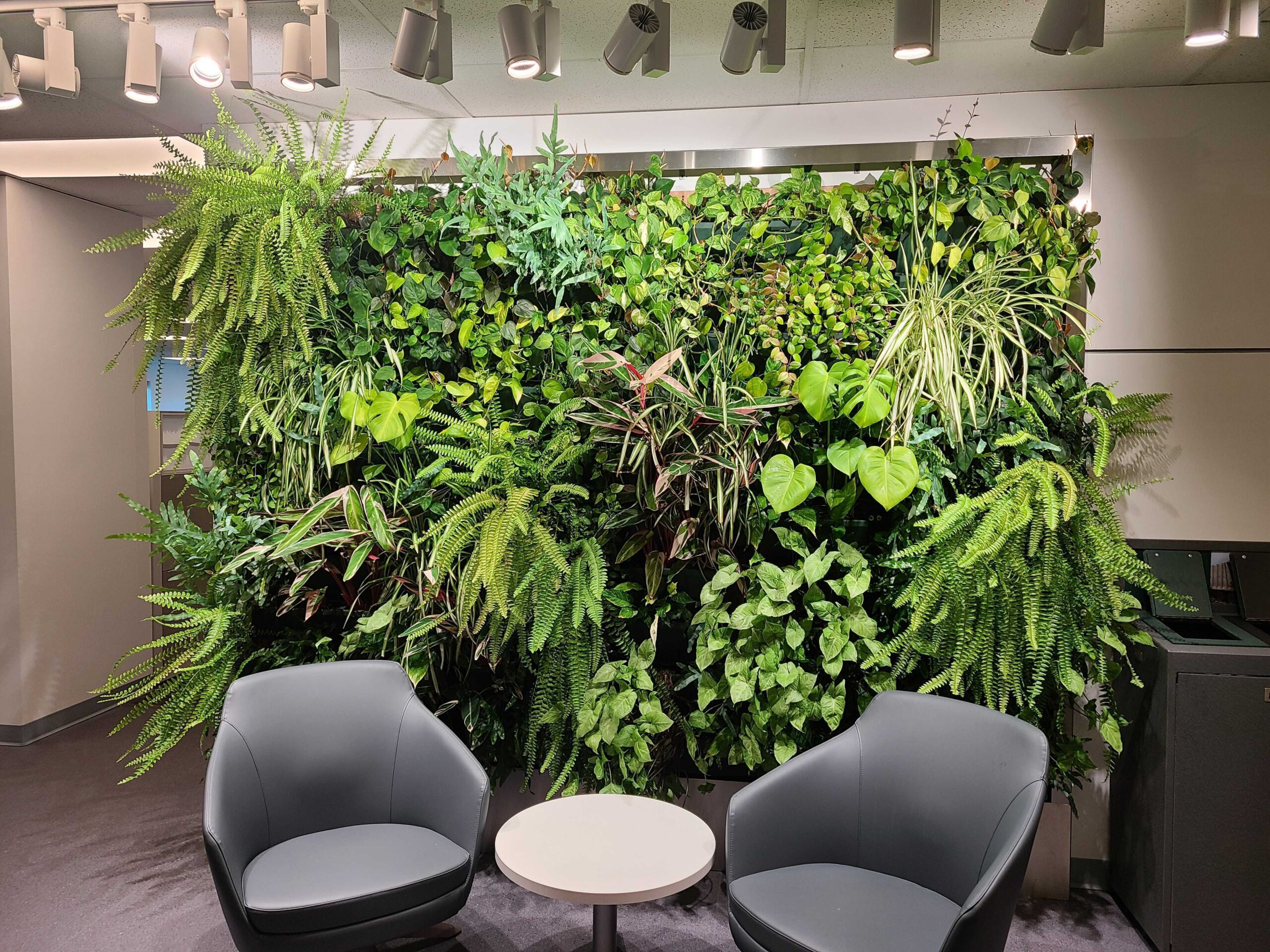 CONTACT USPROJECT NAME:Red Diamond (Pacific Vision) LOCATION:Vancouver, BC INSTALLATION:ByNature BIOPHILIC SYSTEM:Faux Flora panels with logo PRODUCTS:Faux Flora: Designer Wall MAINTENANCE:No maintenance
